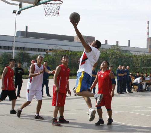 公司篮球场上横幅高悬,一派喜庆欢快的场面,为打好比赛,各参赛队都作了精心准备,选拔出优秀选手积极参赛。此次职工篮球比赛分A、B两支小组,第一阶段为各小组循环赛,通过比赛产生前三名的队伍参加下一阶段比赛,然后进入交叉淘汰赛,最终产生进入决赛的三支球队。9月12日下午,随着裁判员的哨响,首场赛事在钢管队对仓储队、动力队对后勤队之间进行,四支球队势均力敌,比拼异常激烈,最终,钢管队、动力队赢得了本次篮球赛的首场胜利。比赛现场,篮球队员个个精神振奋,你争我抢,各不相让,漂亮的抢断,完美的过人,惊准的投篮,默契的配合,充分发挥出了各自的技战术水平。场上场下气氛高潮迭起,掌声、欢呼声不断,啦啦队为各自队员呐喊助威,浓厚的团队精神营造了富有激情的比赛氛围;比赛期间,各球队人员奋力拼搏,齐心协力,本着“友谊第一、比赛第二、热情参与、共同提高”的原则,尊重裁判、尊重对手,赛出了水平、赛出了成绩、赛出了风格、赛出了友谊,实现了比赛成绩和精神文明双丰收!