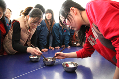 当日上午8时,还没到活动时间,四楼活动室内却早早的聚满了前来参加活动的女职工,使得整个活动室热闹非凡。游戏娱乐活动设置了1分钟跳绳、蒙眼闯关、欢乐移豆、球之星和有奖乐套圈等趣味十足的小游戏,每个游戏都融知识性、趣味性和娱乐性为一体,吸引了女职工们的积极响应,大家纷纷踊跃报名参加。在一分钟跳绳的活动中,选手们强劲的实力感染着现场,围观的职工们则为她们加油助威,气氛被一次次地推向高潮,欢声笑语不断。特别是在球之星游戏中,选手使足吸力,用吸管将一个个乒乓球从一处吸移到另一处,那一个个怪异的姿势引起了全场一阵阵地欢笑。而在蒙眼闯关的游戏中,一个选手用眼罩把眼蒙上,另一个选手用语言帮助其选手以最快的速度完成两人配合所担任的闯关任务,充分考验了同事间的默契。