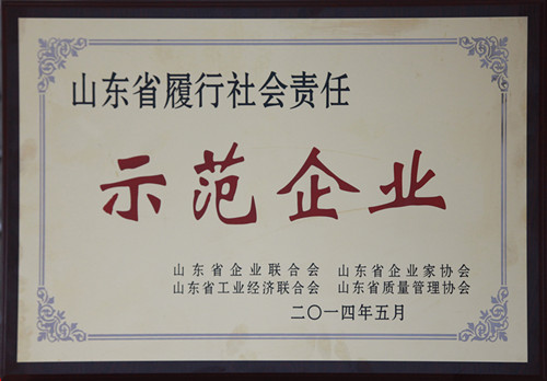 企业在追求经济效益、努力实现自我发展的同时,积极承担对经济、社会和环境可持续发展的责任,既是全社会对企业的殷切期望和广泛要求,也是企业外塑形象、内强竞争力、实现健康发展的必然选择。2013年12月份,为倡导我省企业积极承担和履行社会责任,由山东省企业联合会、山东省企业家协会、山东省工业经济联合会、山东省质量管理协会联合在全省企业中继续开展“山东省履行社会责任示范企业”创建工作。该创建工作由专家组分别对申报企业在诚信经营、综合管理、照章纳税、安全生产、劳动保障、节能环保、社会公益、遵守合同、金融信用等履行社会责任方面进行了严格审查,通过评审,专家组对我公司综合管理方面开展的各项工作给予了高度评价与认可。