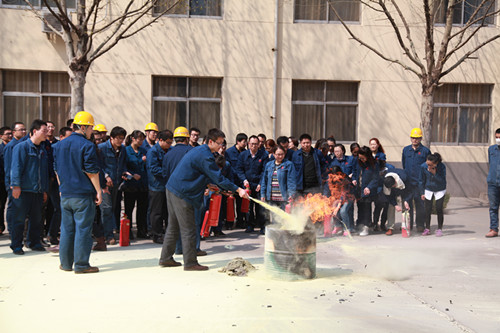 接着,公司安全员还组织大家还进行灭火演练,安监部详细介绍了灭火器的基本常识,讲解了灭火步骤以及基本技能和运用技巧,并现场演示了灭火器使用的操作流程,同时让工作人员一一使用灭火器灭火,使全体员工迅速掌握其使用方法要领。大家在安监人员的指导下,也都亲自体验灭火,演练过程中,大家都临危不乱,有序、迅速,提到适当位置,拔去保险销,左手压下把,对准燃烧物底部喷射……大家过了一把火险实战课瘾。