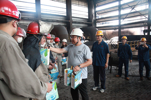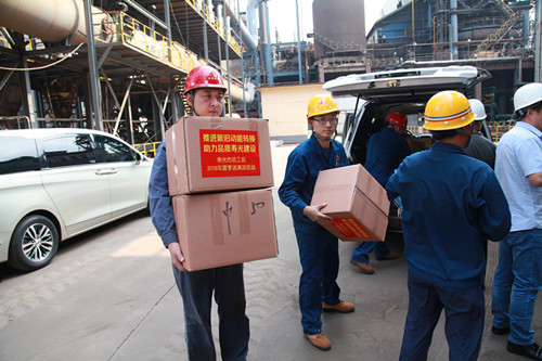 特钢公司总会计师韩彦勇陪同市总工会领导进行了防暑降温用品发放。