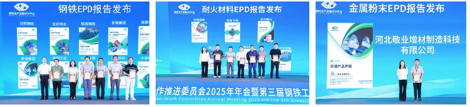 图为金属粉末EPD报告、耐火材料EPD报告、钢铁产品EPD报告发布仪式