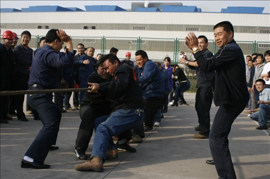 10月24日下午,决胜赛开始,大家都纷纷摆好了自己最有利的姿势,个个集中精力,如箭在弦。在裁判的一声号令下,参赛选手们激情奋战,啦啦队员们大声呐喊。炼钢一厂队以力拨千均之势稳拔赛绳,致使炼铁厂队在胜利的道路上面临着严峻考验,决赛进入高潮。就在这关键时刻,双方队员毫不松手,奋力拼搏。场外观众人头攒动,将赛场围得密不透风,欢呼声、喝彩声此起彼伏;比赛,高潮连着高潮,精彩接着精彩。嘀……,随着一声清脆的哨响,炼钢一厂代表队经过多个奋力比拼,最终以其不可撼动的力量拿下了关健的一局,取得了本次拔河比赛的第一名,炼铁厂队取得第二名,全场观众再次报以经久不息的雷鸣般掌声!而拔河比赛中所体现出来的那种坚持不懈的精神和毅力也在每个人心中留下了深刻的印象。最后,炼钢二厂队、动力厂队代表队分别获得第三名,第四名。比赛在祥和、热烈、欢庆的气氛中圆满结束。