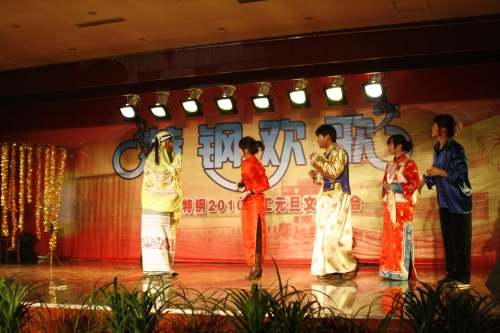 12月30日晚,公司综合楼大会议室内欢歌笑语,暧意融融,霓虹游走,巨能特钢2010职工元旦文艺晚会在这里举行。