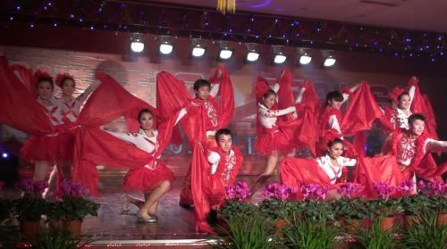 18点30分整,“瑞兔纳祥报春来,和风细雨好年景;特钢发展谱新篇,仓颉故里唱太平;今晚,我们用自己的歌声为巨能特钢的发展加油助威,我们用自己的欢笑为构建和谐特钢营造氛围。今晚,我们以优美的歌喉,以甜美的音韵,以多姿多彩的婀娜舞步,赞美特钢取得的成就,庆贺特钢成功的辉煌……”伴随着主持人甜美的开场白,以“和谐特钢、再创辉煌”为主题的巨能特钢2011职工元旦文艺晚会在激情四溢的开场舞蹈《激情红绸》中拉开帷幕,舞者动感的舞蹈,瞬间点燃了全场观众的激情,渲染出整场晚会浓厚热烈的喜庆气氛。